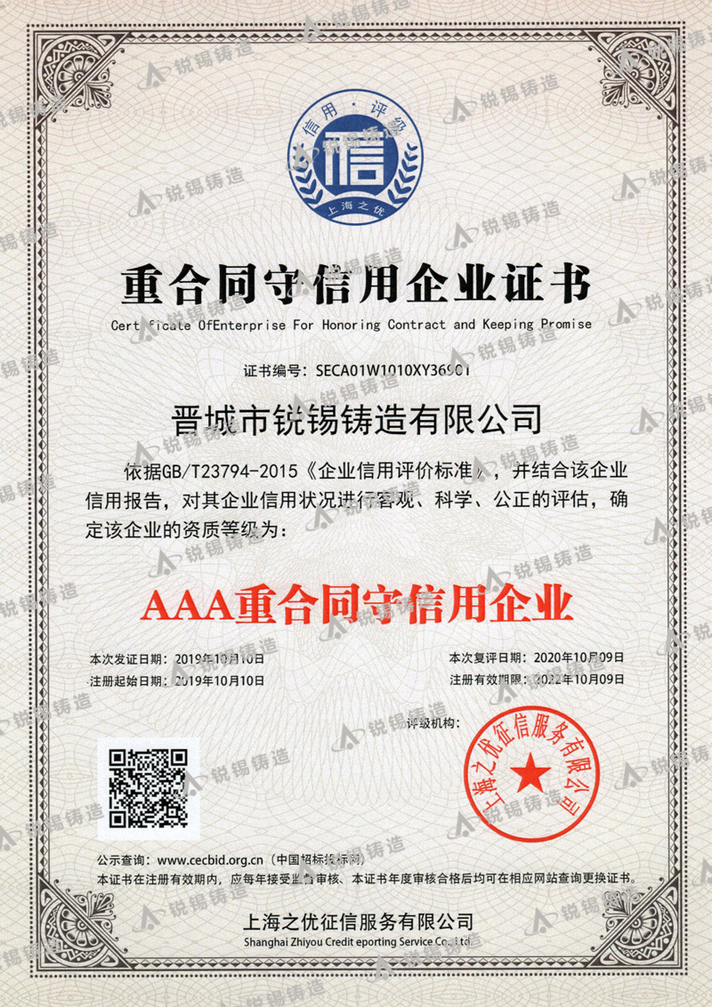 我公司生產(chǎn)的銳錫牌球墨鑄鐵件和鑄鋼件有嚴格的質(zhì)量管理,嚴格按照CB/T 23858-2009和GB/T 25628-2010 標準進行生產(chǎn)制造,公司